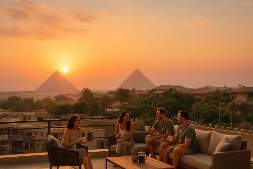 Die Unterkunft Boho Getaway with Pyramids View & Jacuzzi verfügt über Stadtblick und Übernachtungsmöglichkeiten mit einer Terrasse und einem Balkon, ungefähr 6,6 km von Pyramiden von Gizeh entfernt. Diese Ferienwohnung bietet einen Garten, einen Grill, kostenloses WLAN und einen kostenlosen Privatparkplatz.