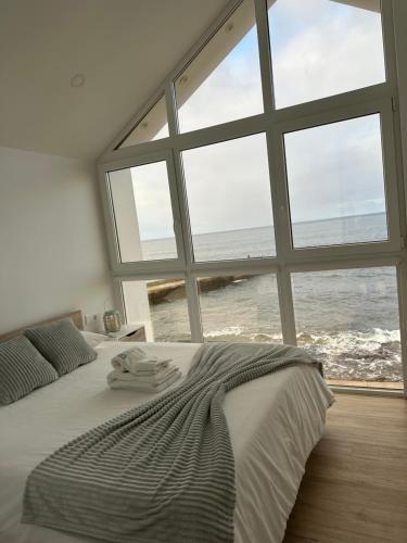 Dieses Ferienhaus mit einer Terrasse und Meerblick bietet 2 Schlafzimmer, ein Wohnzimmer, einen Flachbild-TV, eine gut ausgestattete Küche mit einem Kühlschrank und einem Ofen sowie 1 Badezimmer mit einer Dusche. In diesem Ferienhaus werden Handtücher und Bettwäsche angeboten.