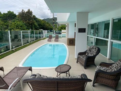 Die Unterkunft Lindo! Apto com piscina na praia de Palmas! SV01H ist gelegen in Governador Celso Ramos nahe Strand Praia de Palmas. Diese Unterkunft bietet Zugang zu einem eigenen Pool, kostenlosem WLAN und einem kostenlosen Privatparkplatz.