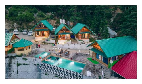 Die Unterkunft Orchard Huts mit Bergblick in Chamba bietet Übernachtungsmöglichkeiten mit einem Außenpool, einem Garten, einer Gemeinschaftslounge und einer Terrasse. WLAN und ein Privatparkplatz sind ohne Aufpreis in der Unterkunft Orchard Huts vorhanden.