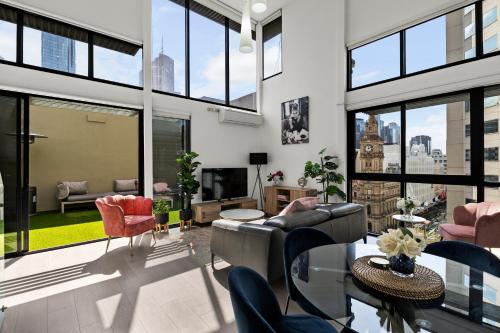 Direkt im Herzen von Melbourne, gelegen in kurzer Entfernung von Block Arcade Melbourne und Melbourne City Conference Centre (MCCC), bietet die Unterkunft Private Apartment Rare Loft Style Penthouse Bourke St Mall with Parking kostenloses WLAN, eine Klimaanlage und Haushaltsannehmlichkeiten wie einen Kühlschrank und eine Kaffeemaschine. Diese Unterkunft bietet Zugang zu einem Balkon und einem kostenlosen Privatparkplatz.