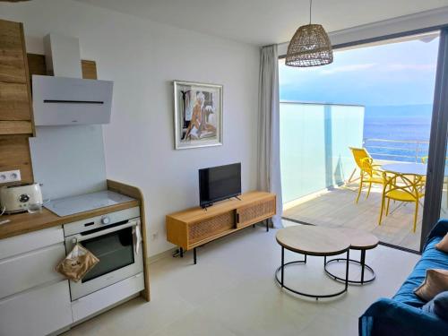 Alle Wohneinheiten verfügen über eine Terrasse mit Meerblick, eine Küche mit einem Kühlschrank und einem Geschirrspüler sowie ein eigenes Badezimmer mit einer Dusche. Es gibt einen Ofen, eine Mikrowelle und eine Herdplatte sowie eine Kaffeemaschine und einen Wasserkocher.