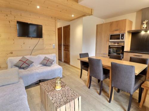 Die Unterkunft Luxe Courchevel: Suite et Coin Montagne, 6 Pers, Accès Terrasse - FR-1-830-19 ist ausgestattet mit 2 Schlafzimmern, einer Küche mit einem Kühlschrank und einem Geschirrspüler, einer Waschmaschine und 3 Badezimmern. Es gibt einen TV.