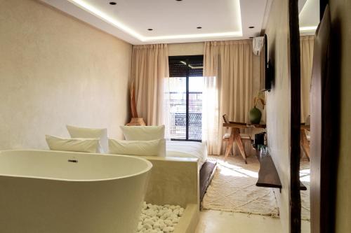 Gelegen 700 m von Yves Saint Laurent Museum, 2,2 km von Bahnhof Marrakesch und 2,2 km von Le Jardin Secret, bietet die Unterkunft Suite luxueuse avec baignoire ouverte Übernachtungsmöglichkeiten in Marrakesch. Die Unterkunft ist 900 m von Jardin Majorelle entfernt und hat kostenloses WLAN in der ganzen Unterkunft.