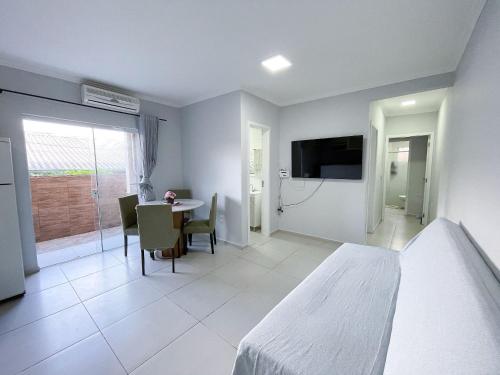 Gelegen 2,2 km von Strand Praia de Canasvieiras, 17 km von Einkaufszentrum Florida und 22 km von Einkaufszentrum Iguatemi Florianopolis, bietet die Unterkunft Apê com A/C, Churrasqueira, Garagem - Canasvieiras Übernachtungsmöglichkeiten in Florianópolis. Diese Unterkunft bietet Zugang zu einem Balkon, einem kostenlosen Privatparkplatz und kostenlosem WLAN.