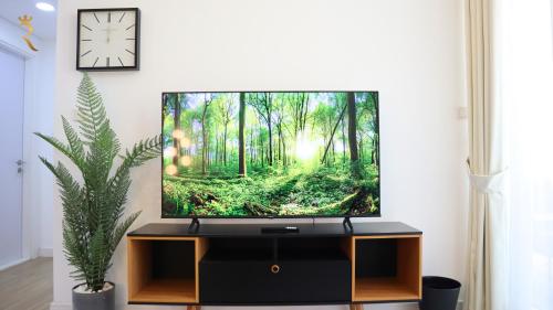Diese Ferienwohnung ist versehen mit einem Flachbild-TV. In der Küche gibt es einen Kühlschrank, einen Ofen sowie eine Mikrowelle und die Unterkunft besticht außerdem mit einer Dusche, kostenlosen Pflegeprodukten und einem Haartrockner.