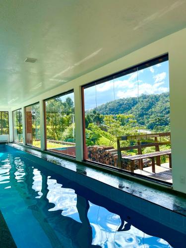 Die in Angelina gelegene Unterkunft Pousada Rural Ritmos da Terra bietet kostenloses WLAN, einen Garten mit einer Terrasse, Bergblick sowie Zugang zu einem Innenpool und einer Sauna.