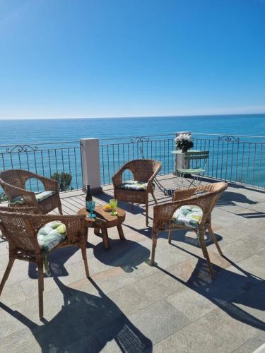 Diese Ferienwohnung mit einer Terrasse und Meerblick bietet 1 Schlafzimmer, ein Wohnzimmer, einen Flachbild-TV, eine gut ausgestattete Küche mit einem Kühlschrank und einer Mikrowelle sowie 1 Badezimmer mit einem Bidet. In dieser Ferienwohnung werden Handtücher und Bettwäsche angeboten.