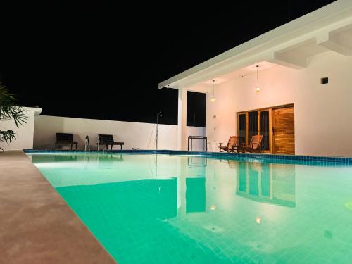 Located in Pottuvil, a 6-minute walk from Arugam Bay Beach, Serenity Villa has accommodations with a garden, free private parking and a shared lounge. Featuring room service, this property also provides guests with a sun terrace. The property provides a 24-hour front desk, airport transportation, a shared kitchen and free WiFi throughout the property.
