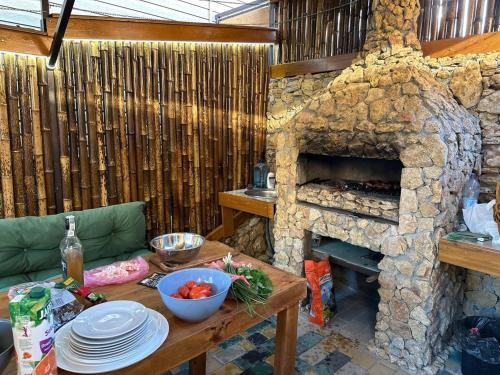 The vacation home also includes outdoor fireplace and a picnic area for a day outdoors.