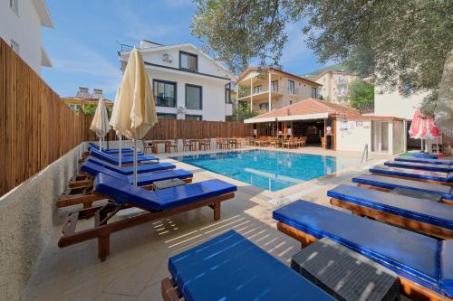 Gold Monami Otel features a seasonal outdoor swimming pool, garden, a shared lounge and restaurant in Fethiye. Providing a bar, the property is located within 5.4 miles of Ece Saray Marina. The rooms are equipped with a patio with mountain views.