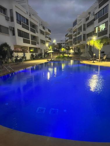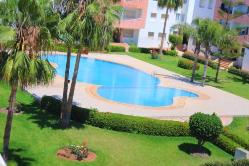 Spacieux appartement dans une résidence avec piscine is located in Mohammedia, just a 6-minute walk from Plage Mimosa and 22 miles from Hassan II Mosq. This beachfront property offers access to a balcony, free private parking, and free Wifi. Outdoor seating is also available at the apartment.