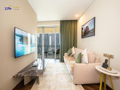Minimalistic Studio in Palm Views - Palm Jumeirah is located in Dubai, just a 2-minute walk from Frond A Beach and 2.6 miles from Aquaventure Waterpark. This property offers access to a balcony, free private parking, and free Wifi. During your stay at this apartment, you can use an outdoor swimming pool, as well as a selection of a fitness center and an elevator.