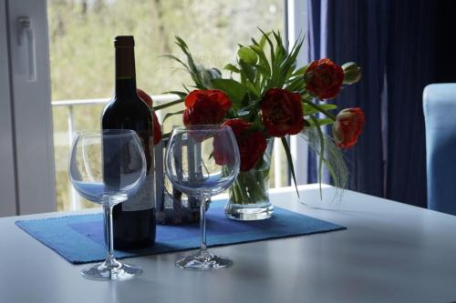 The spacious apartment includes 2 bedrooms, a fully equipped kitchenette with a dishwasher and an oven, as well as a coffee machine. Towels and bed linen are available in the apartment. The accommodation is non-smoking.