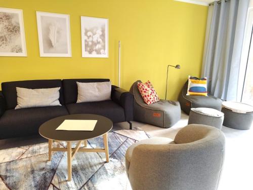 Villa A Cappella - WG 1 "Gelbe Orchidee" is located in Binz, just a 5-minute walk from Binz Beach and 15 miles from Störtebeker Festival. Both free Wifi and parking on-site are accessible at the villa free of charge. The villa features an indoor pool and an elevator.