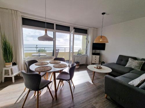 The apartment with a balcony and sea views features 1 bedroom, a living room, a TV, an equipped kitchen with a dishwasher and an oven, and 1 bathroom with a shower. Towels and bed linen are featured in the apartment. The accommodation is non-smoking.