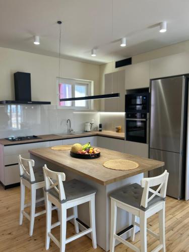 The spacious apartment with a terrace and mountain views features 2 bedrooms, a living room, a flat-screen TV, an equipped kitchen with an oven and a toaster, and 1 bathroom with a bath. A private entrance leads guests into the apartment, where they can enjoy some wine or champagne and fruits. The apartment offers bed linen, towels and housekeeping service.