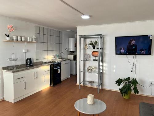 The holiday home is composed of 1 bedroom, a fully equipped kitchen, and 1 bathroom. A flat-screen TV is featured.